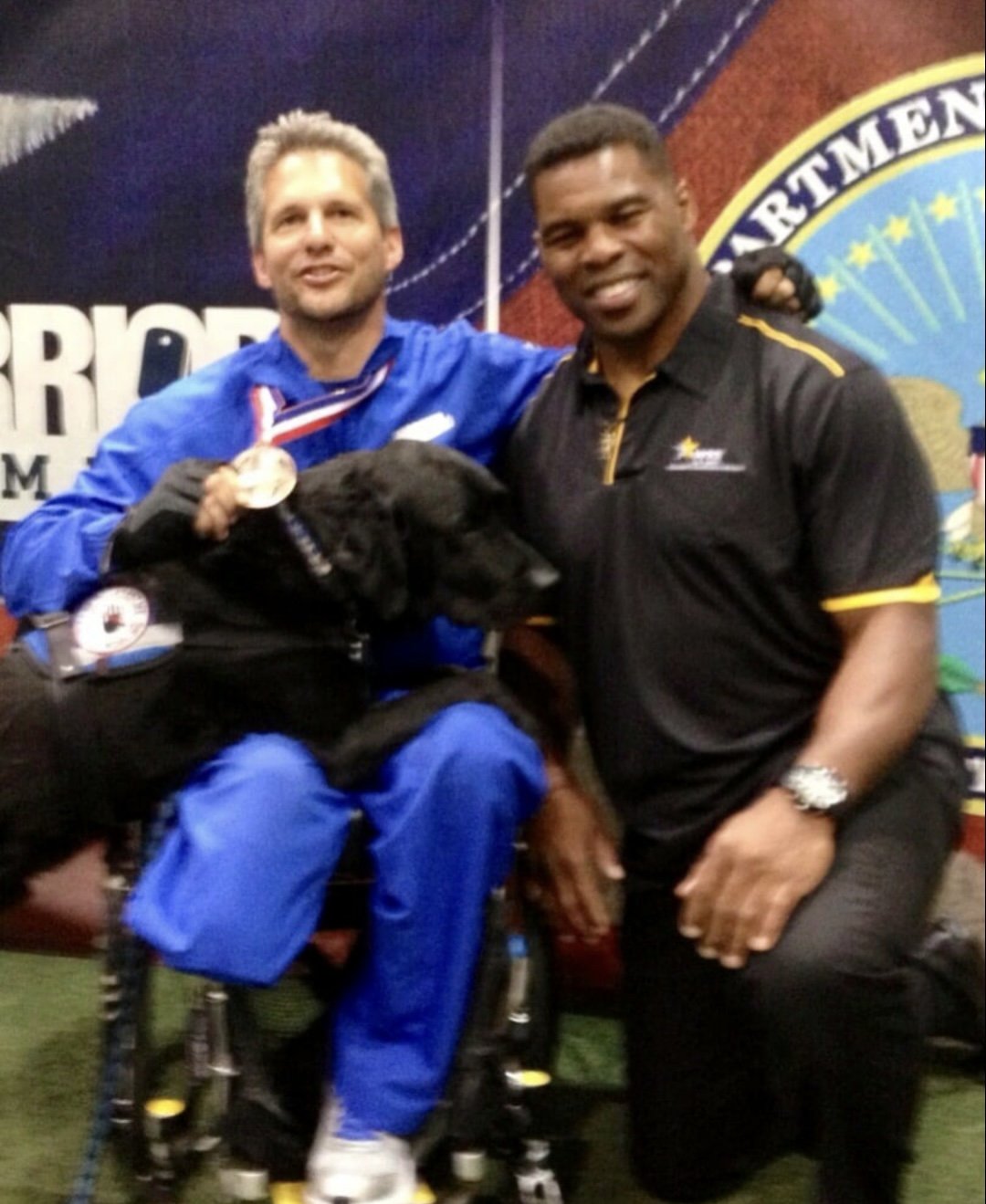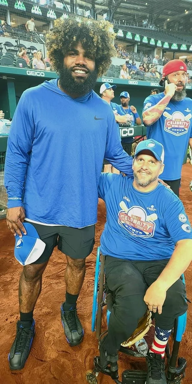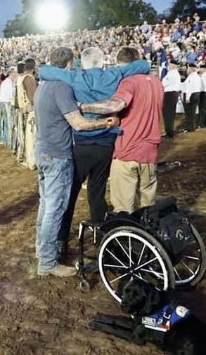 Marcus (Lone Survivor) and Morgan Luttrell holding me up for the National Anthem